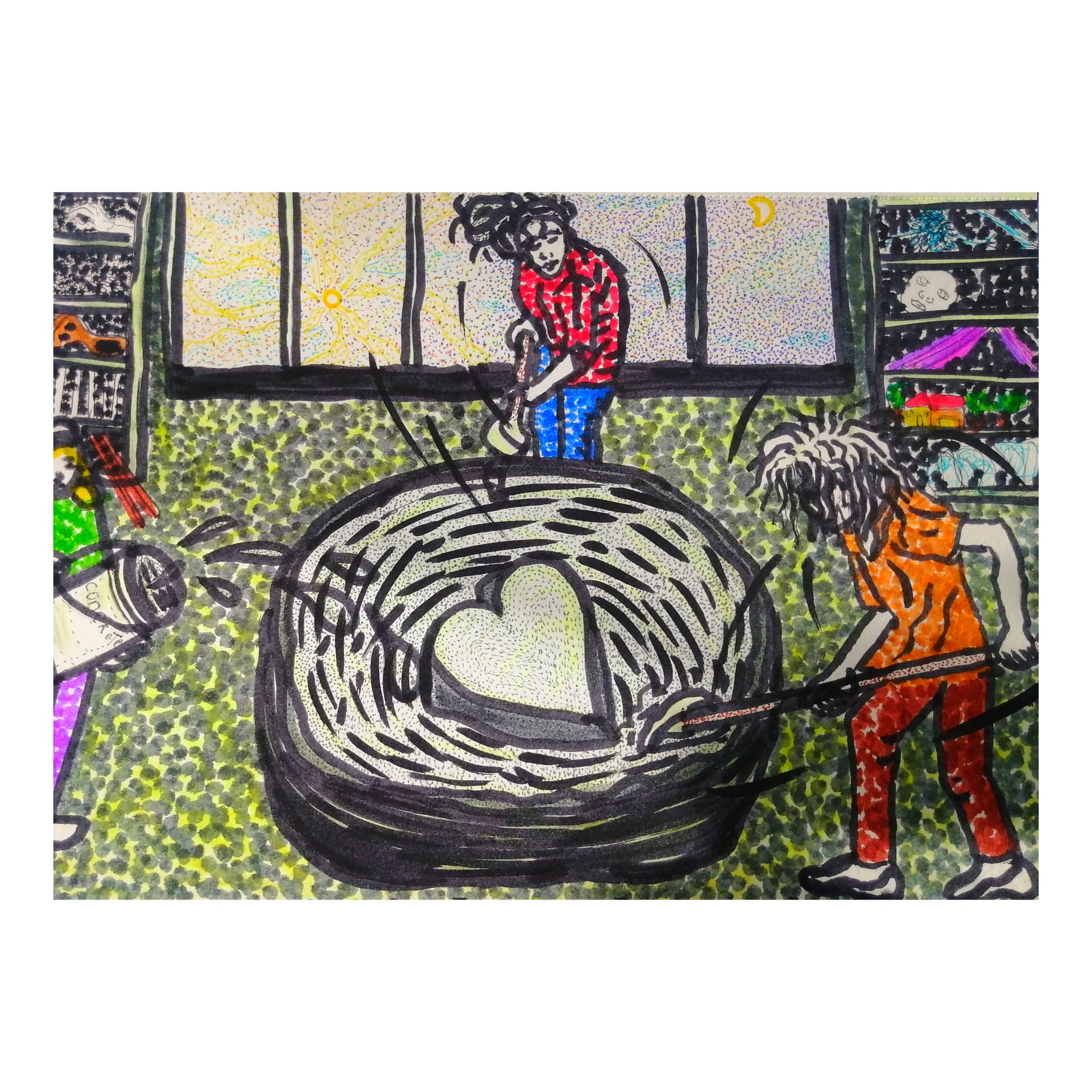 Marker and pen on mixed-media paper. 2022. 7x10 in. Unframed. Original.