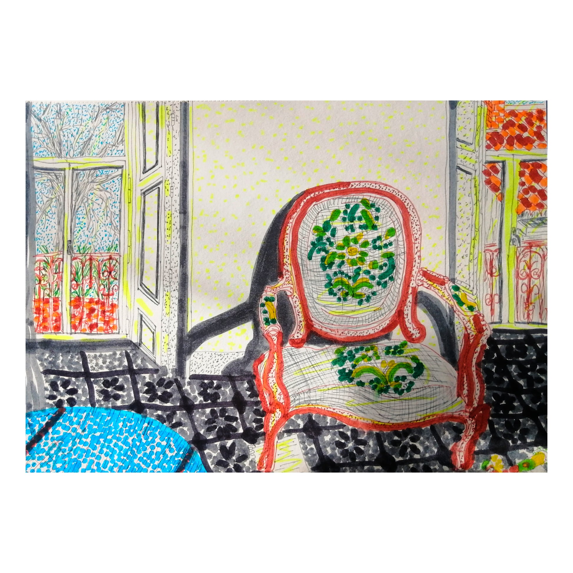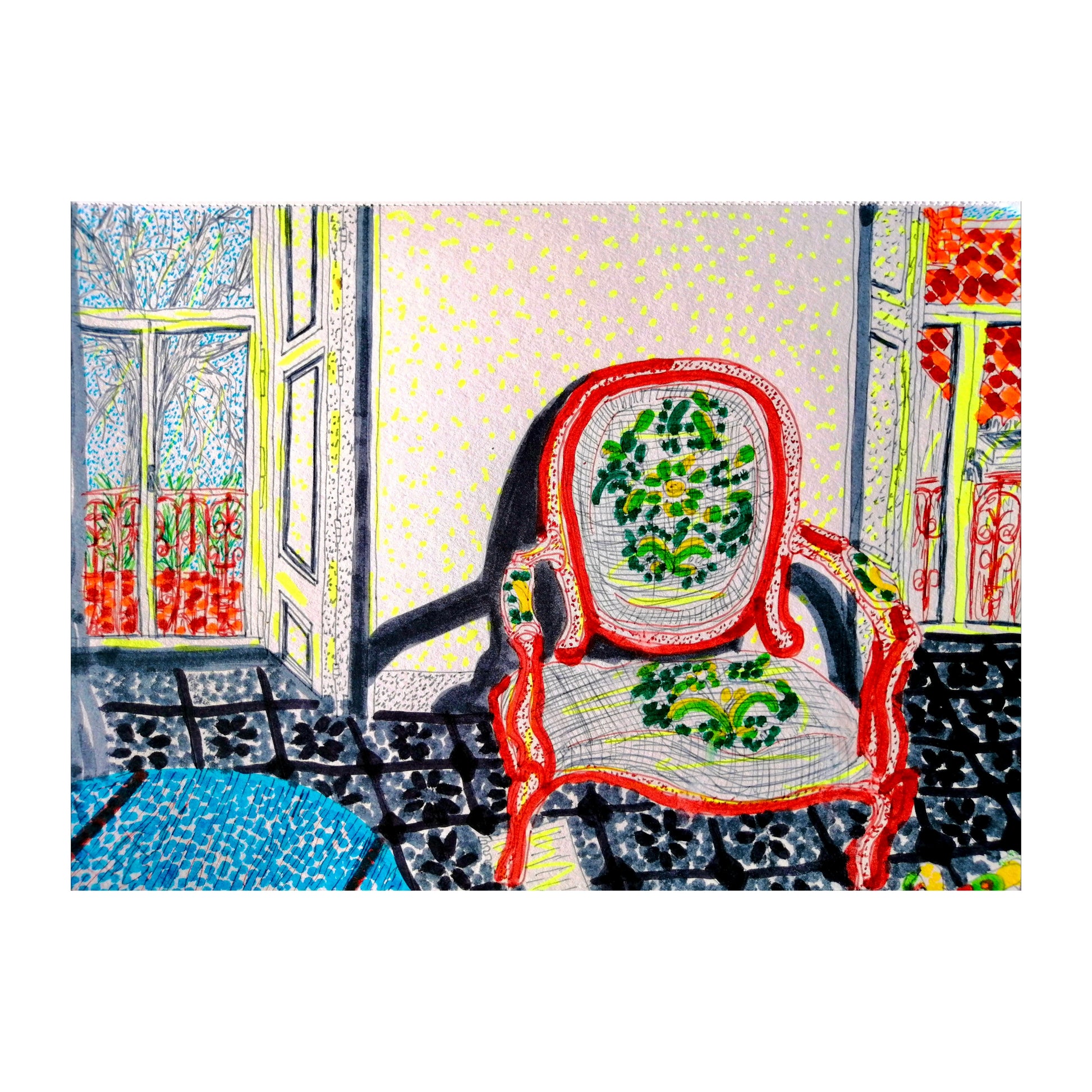 Marker and pen on mixed-media paper. 2022. 7x10 in. Unframed. Original.