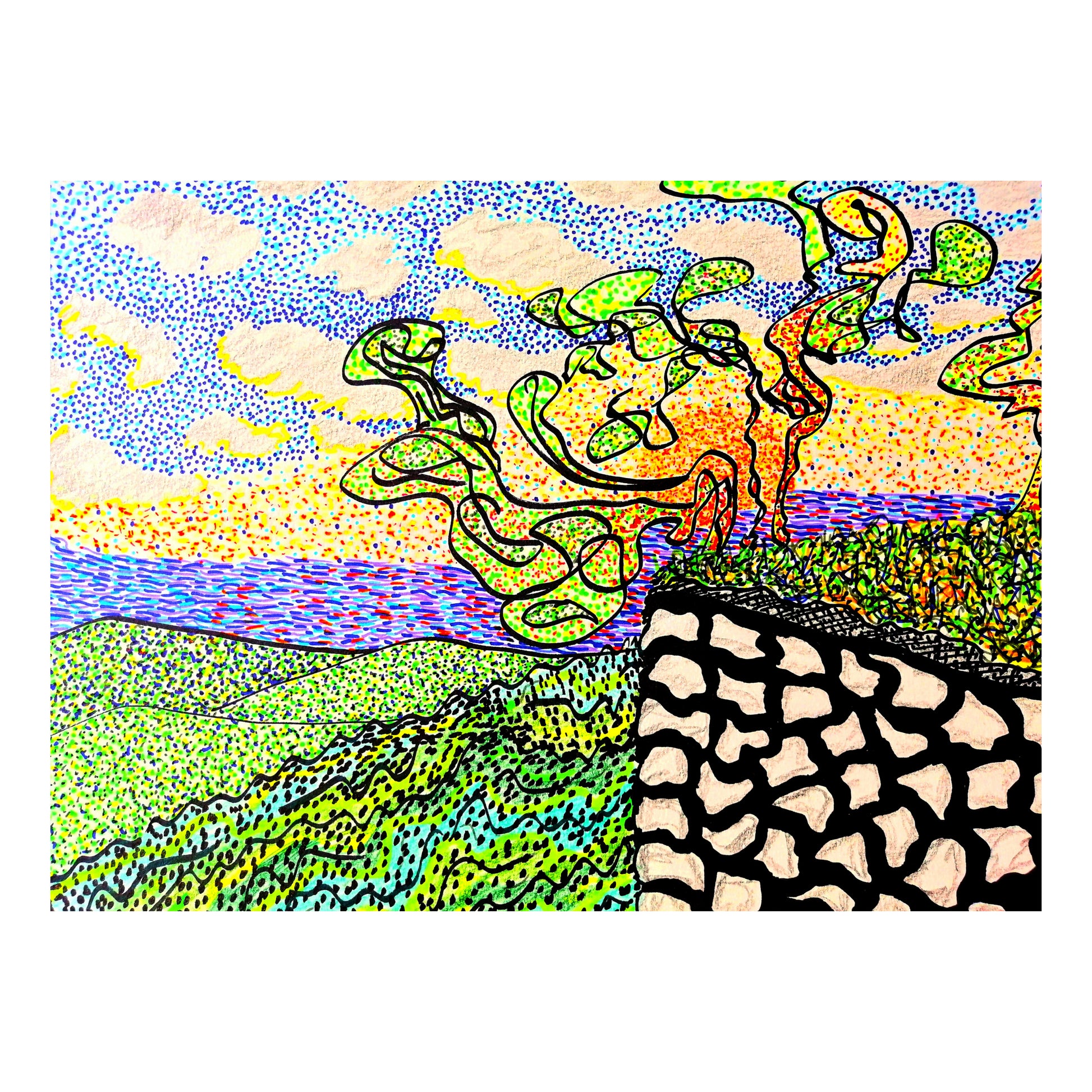 (I’ve been thinking about home lately). Marker and colour pencil on watercolour paper. 2022. 11in×15in. Original.