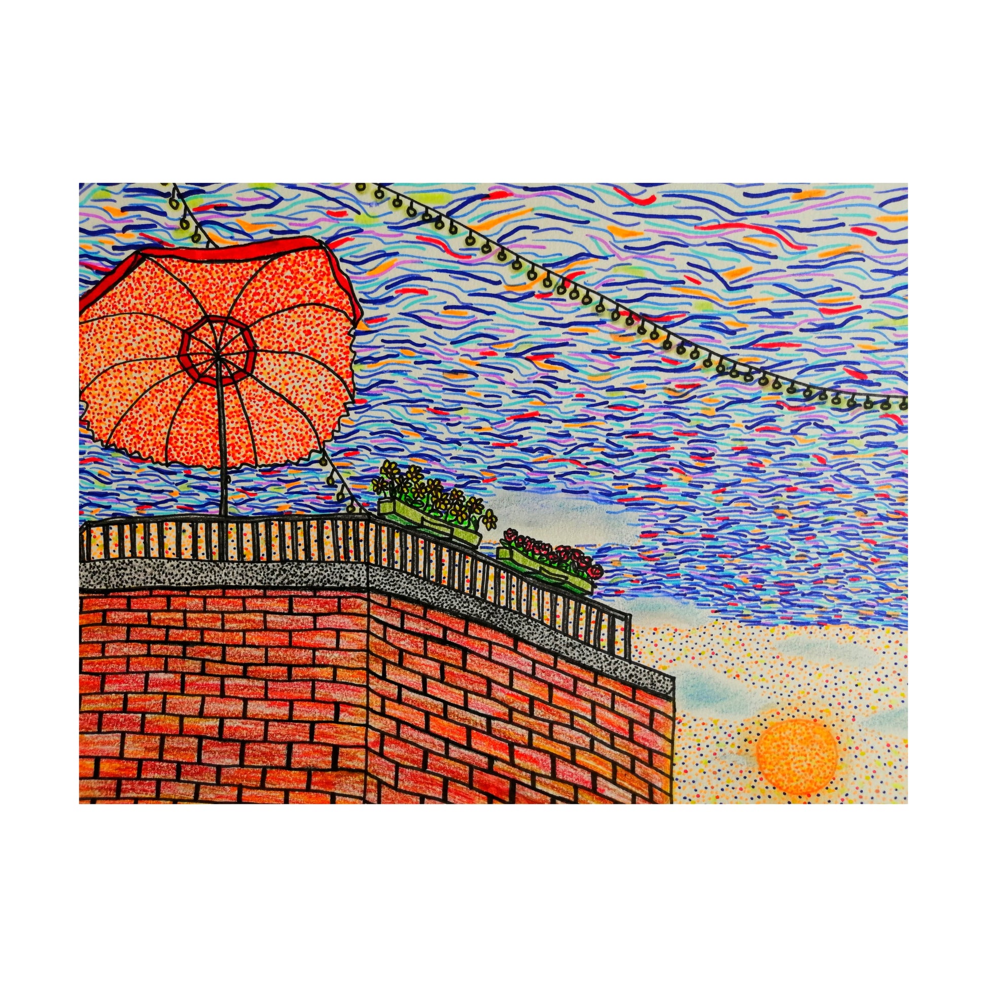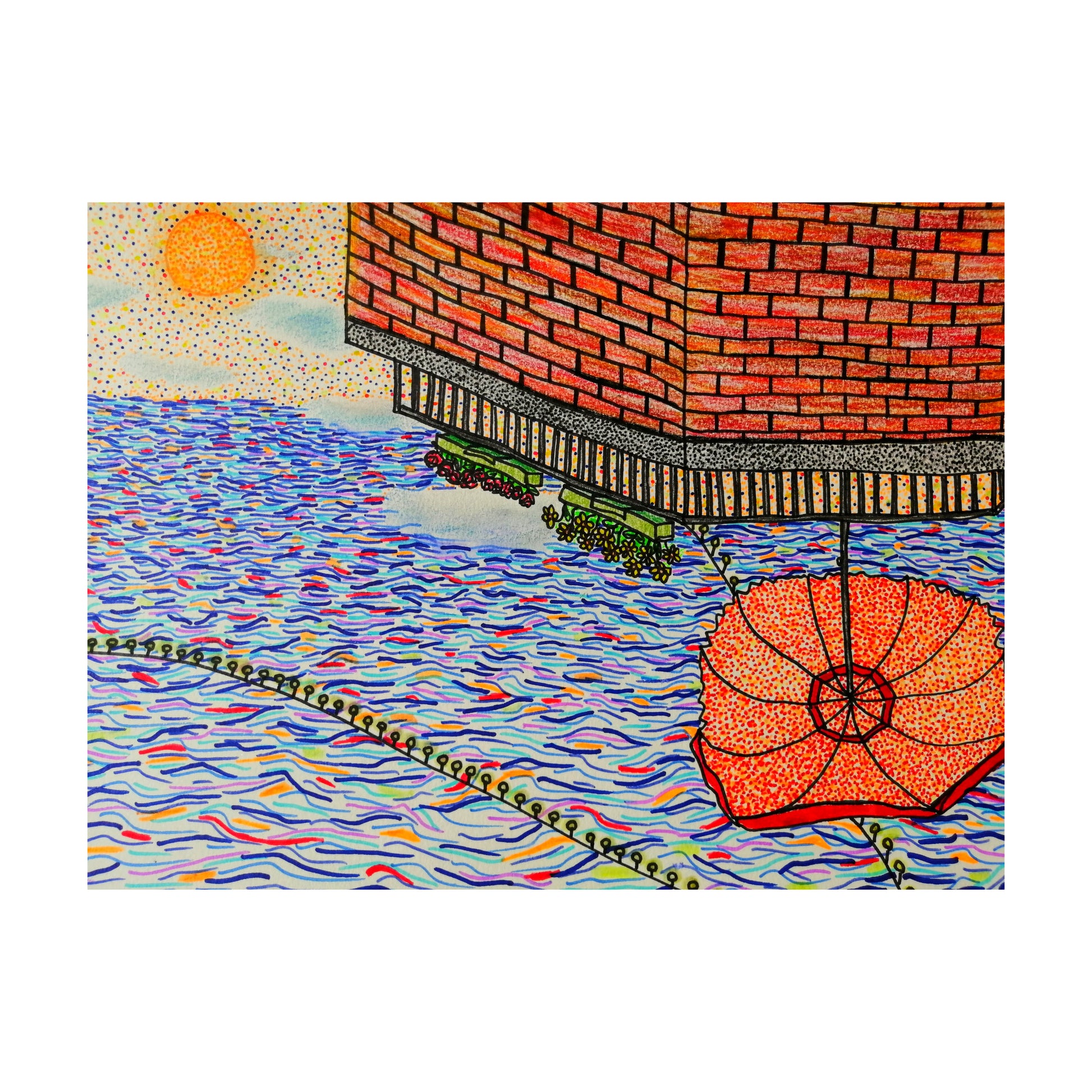 Marker and colour pencil on watercolour paper. 2022. 11in×15in. Reversible. (Let me take you to the ocean). Original.