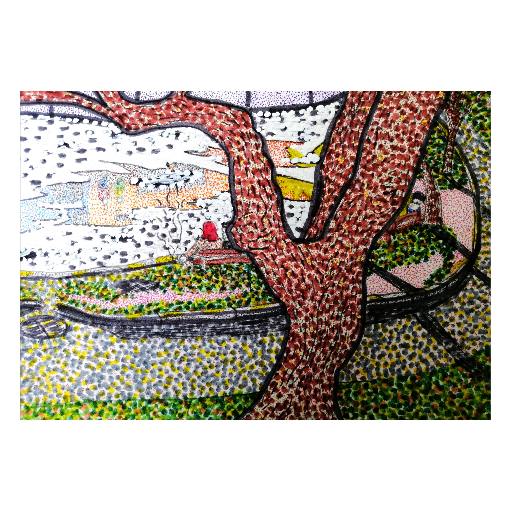 Marker and white out on mixed-media paper. 2022. 7x10in. Unframed. Original.